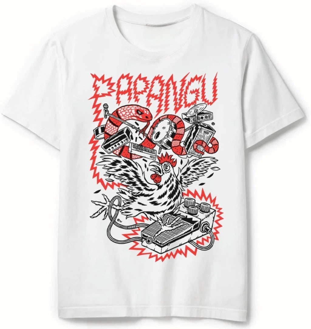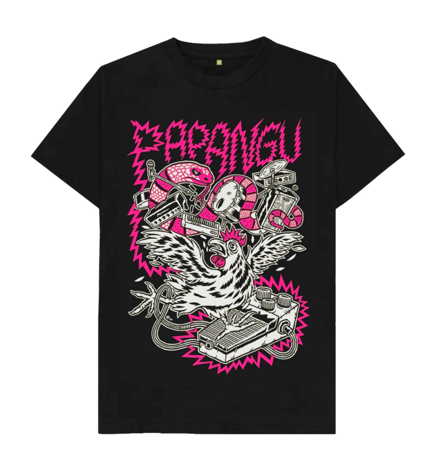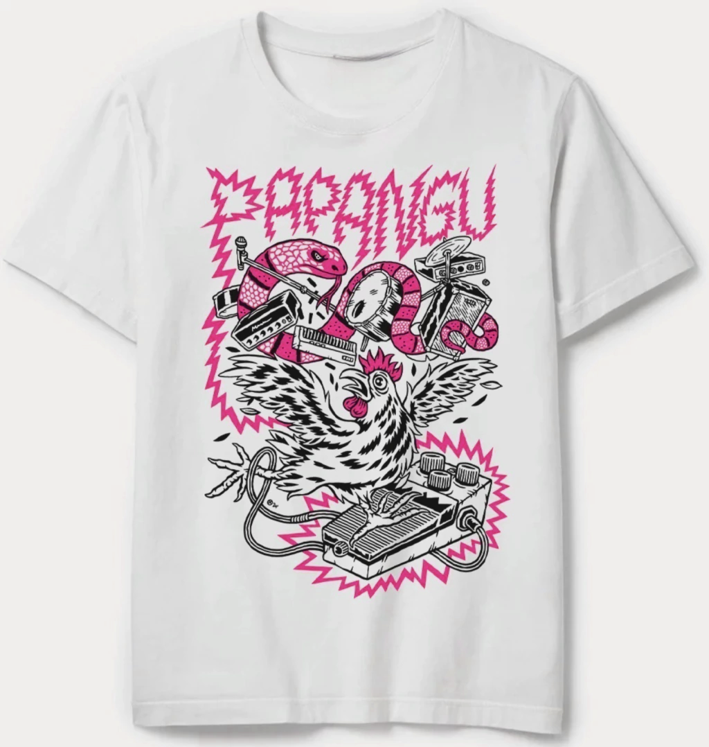 Camiseta chiclete/preta 'Peçonhenta' - arte por Łukasz Kowalczuk (@elkowalczuk)