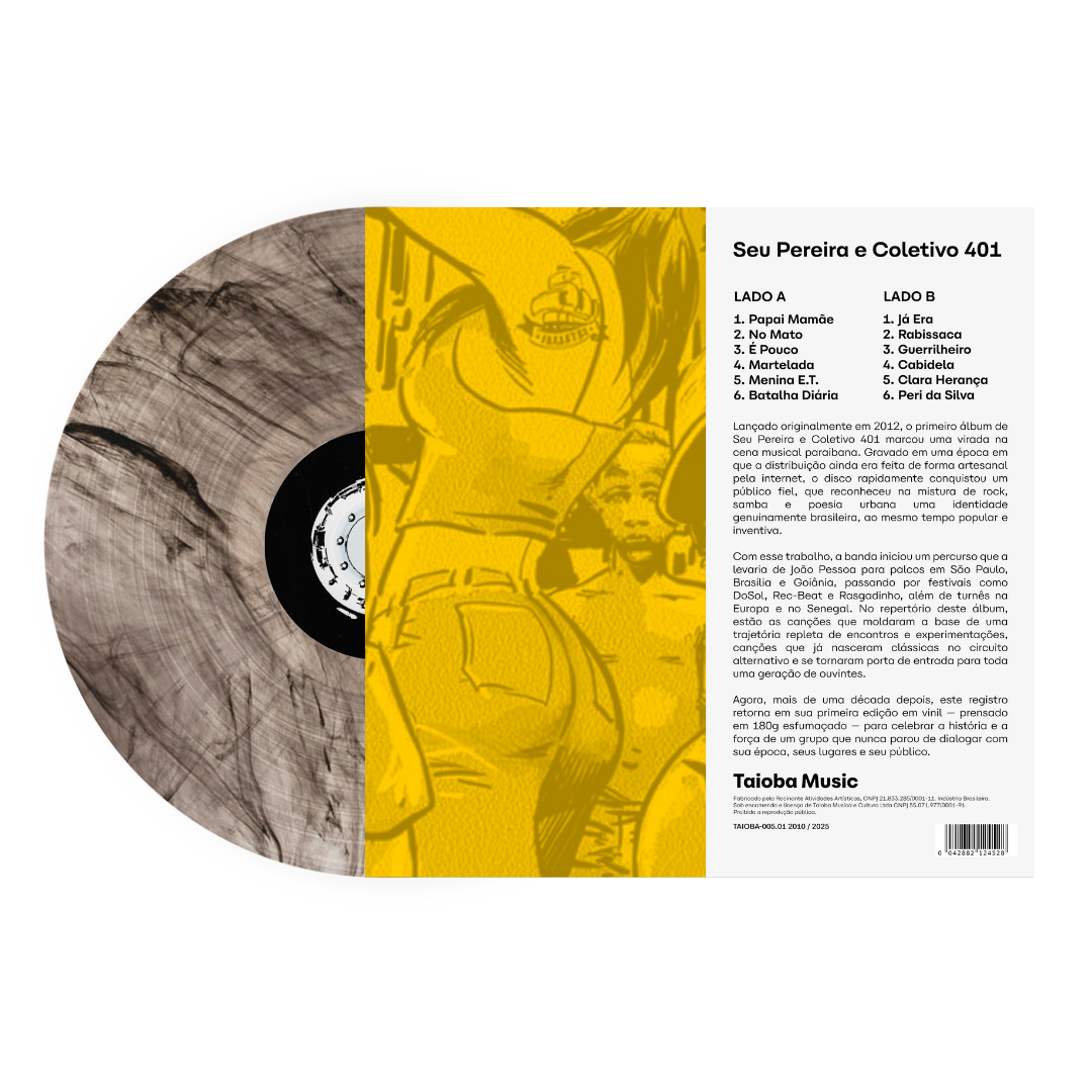 Lançado originalmente em 2012, o primeiro álbum de Seu Pereira e Coletivo 401 marcou uma virada na cena musical paraibana. Gravado em uma época em que a distribuição ainda era feita de forma artesanal pela internet, o disco rapidamente conquistou um público fiel, que reconheceu na mistura de rock, samba e poesia urbana uma identidade genuinamente brasileira, ao mesmo tempo popular e inventiva.